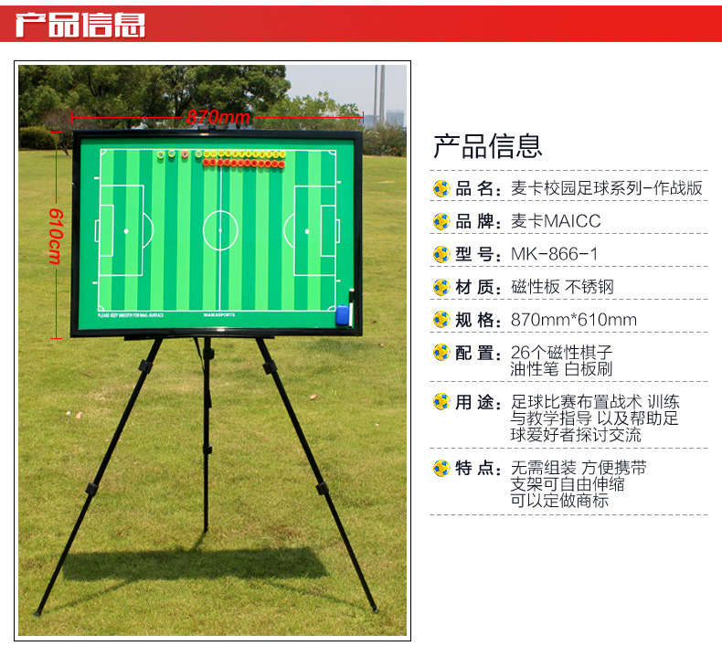 麥卡大號(hào)支架式戰(zhàn)術(shù)板866-1 專業(yè)支架式足球比賽戰(zhàn)術(shù)板大號(hào)足球?qū)崙?zhàn)磁性教練示教板戰(zhàn)術(shù)指揮板