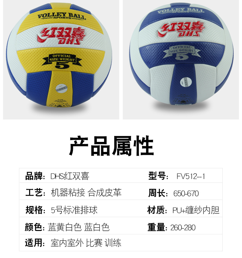 紅雙喜排球FV512-1 學(xué)生中考訓(xùn)練比賽用球PU機縫排球5號球