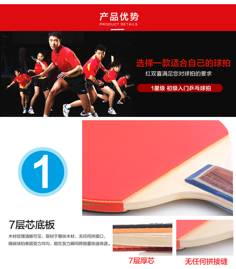 紅雙喜(DHS) R1002-R1003-R1006-R1007一星乒乓球拍