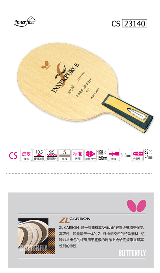 Butterfly蝴蝶23140 乒乓球底板全木碳纖維 INNERFORCE ZLC 直板進(jìn)攻型