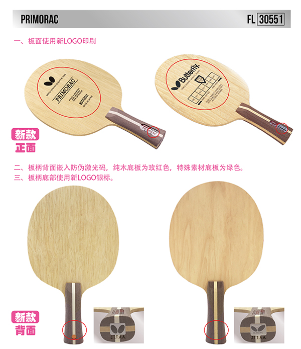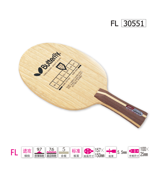Butterfly蝴蝶30551 普木底板30551 普里莫拉茨純木底板乒乓球拍(Butterfly Primorac FL),暢銷經(jīng)典 控球利器 特別適合培養(yǎng)細(xì)膩手感