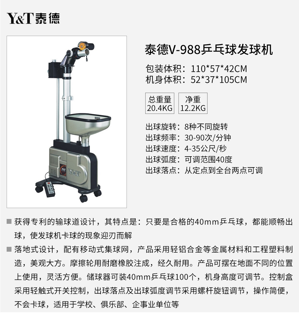 泰德V-988乒乓落地式訓(xùn)練專用智能乒乓發(fā)球機