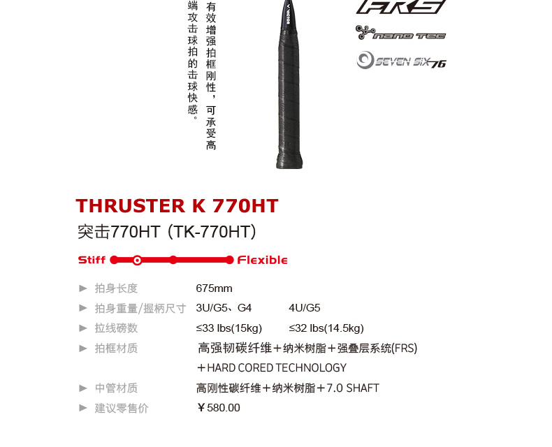 VICTOR威克多羽毛球拍單拍碳素業(yè)余初中級進攻突擊系列TK-770 HT