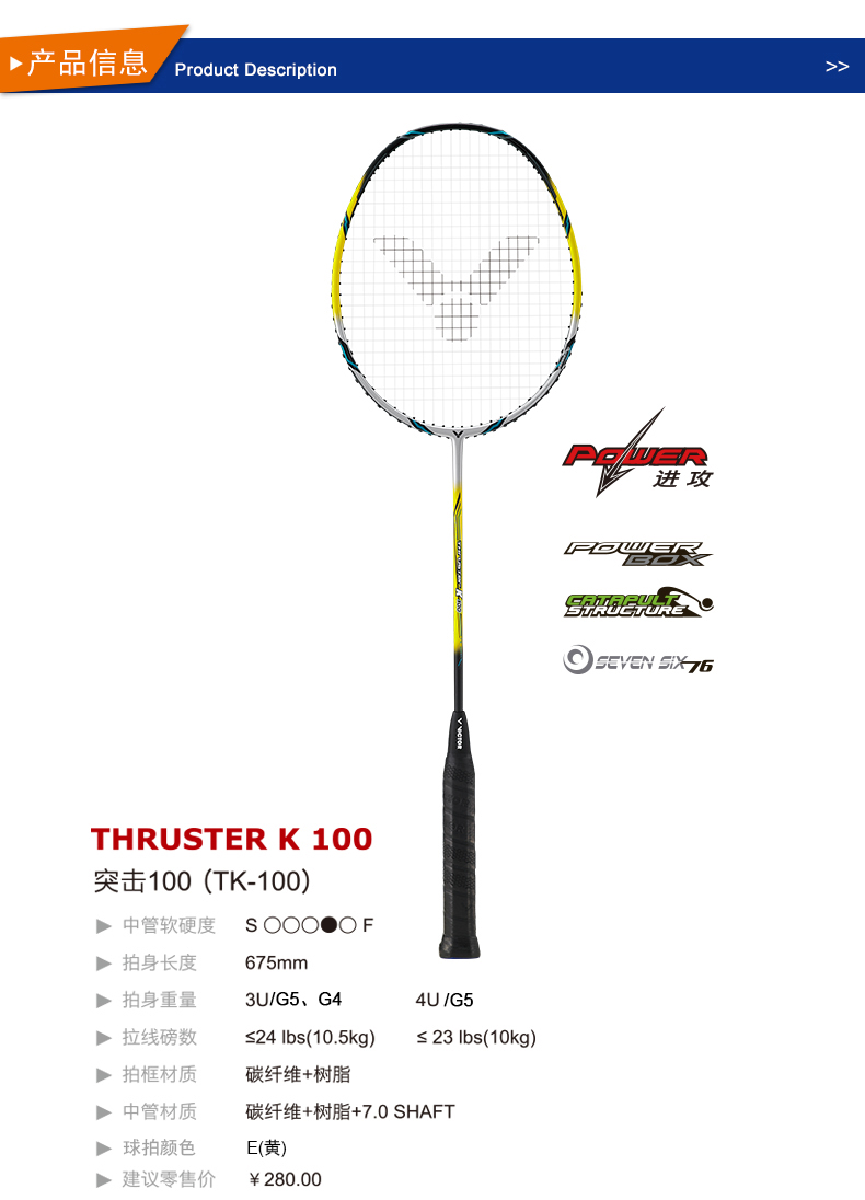 VICTOR威克多羽毛球拍單拍全碳素業(yè)余初級訓(xùn)練穩(wěn)定進(jìn)攻類TK-100
