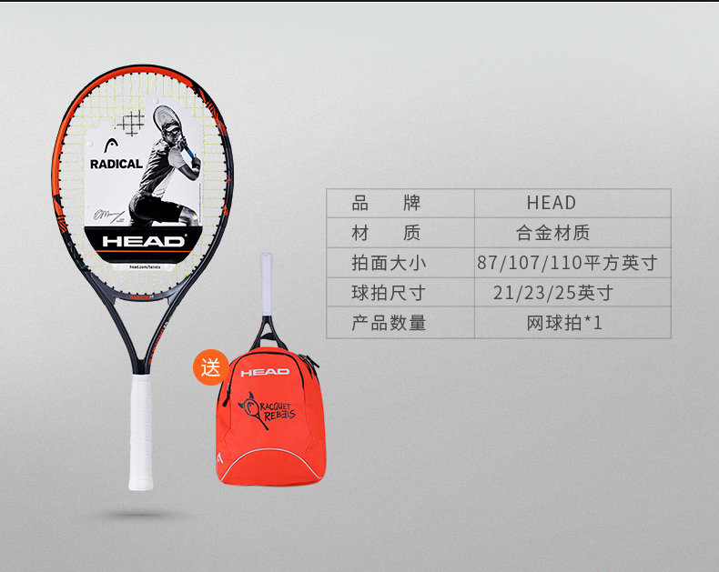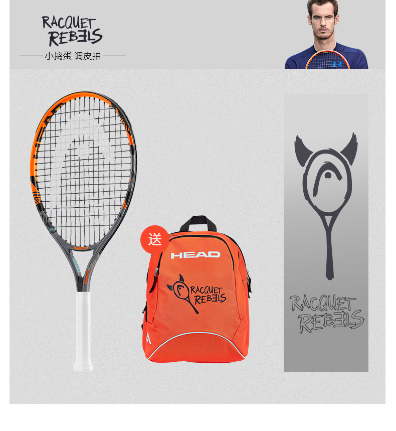 HEAD海德單人雙人專業(yè)小學(xué)生訓(xùn)練初學(xué)者兒童青少年初學(xué)一體網(wǎng)球拍