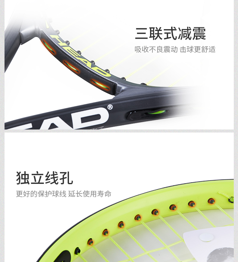 HEAD海德 單人雙人男女士大學(xué)生初學(xué)者碳鋁一體專業(yè)網(wǎng)球拍