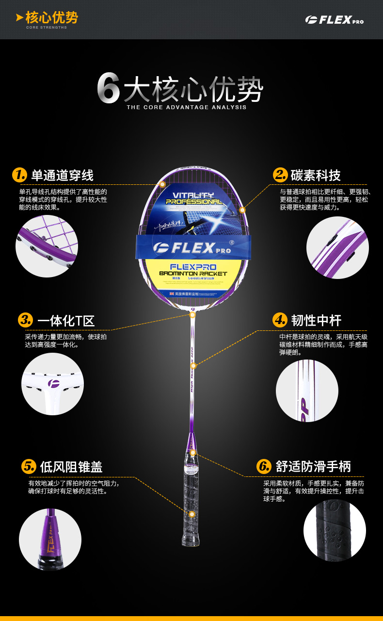 佛雷斯FLEX 羽毛球拍 R系列 全碳素破風(fēng)拍框 攻守平衡型