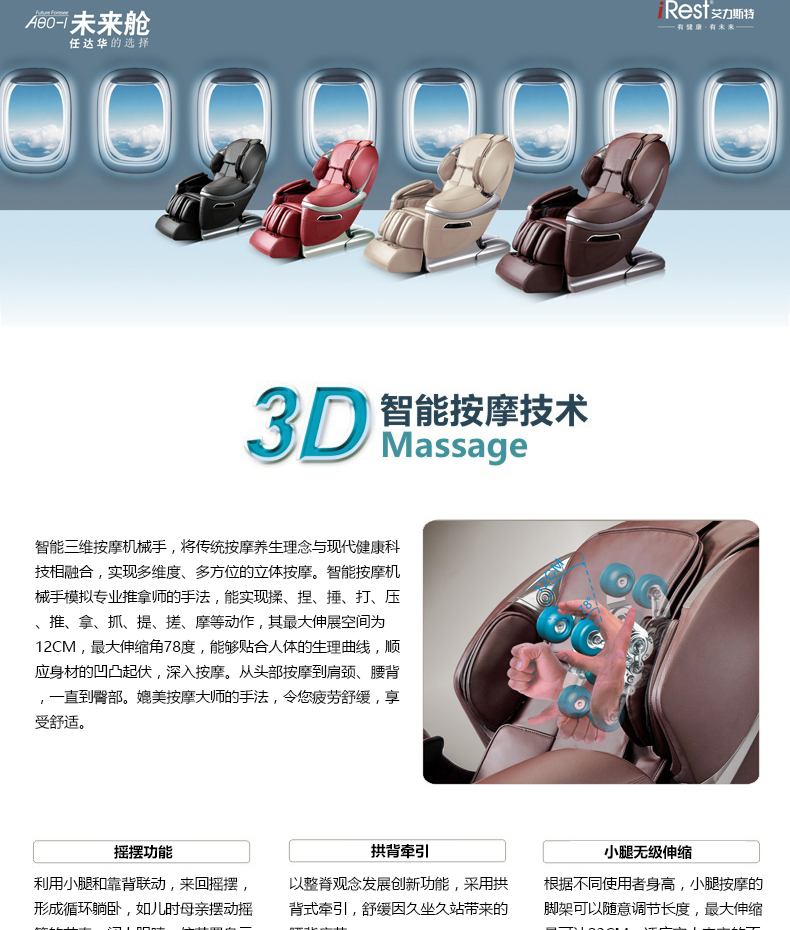 iRest艾力斯特A100 按摩椅 家用太空艙電動豪華智能按摩沙發(fā)