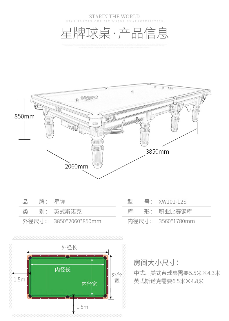 星牌 臺球桌 XW101-12S英式斯諾克世錦賽用臺