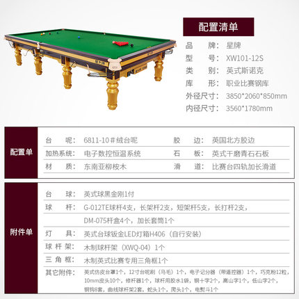 星牌 臺球桌 XW102-12S英式標(biāo)準(zhǔn)斯諾克球臺