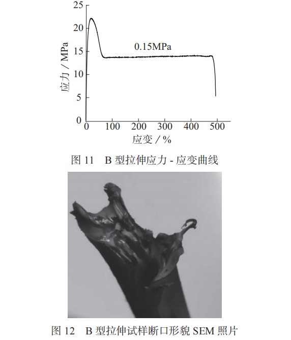 以圖 15、圖 16 示出。從圖中所示數(shù)據(jù)以及對試驗過程的觀察發(fā)現(xiàn),焊接壓力在 0.07~0.45 MPa 內(nèi)的試樣,其斷裂伸長率基本達(dá)到 400% 以上,斷裂形式為基材拉伸 – 基材斷裂,斷裂方式為韌性斷裂。
